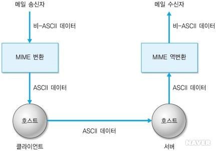 메일 메시지는 기본적으로 ASCII 코드 기반의 텍스트만을 전송한다. 하지만 7비트 형식의 ASCII 코드가 지원하지 않는 각국의 언어와 이진 데이터 형식의 실행 파일, 영상, 음성 데이터를 전송하려면 기능을 확장이 반드시 필요하다. 이런 기능을 포함한 것이 MIME 으로 Multipurpose Internet Mail Extension의 약자이다. MIME는 멀티미디어 데이터를 수용하기 위한 기능을 확장한 메시지이다. 메일 송신 전에 비-ASCII 데이터를 ASCII 데이터로 변환하고 메일을 수신받기 전에 ASCII 데이터를 비-ASCII 데이터로 변환하는 과정을 수행한다. 메시지는 헤더와 빈 줄, 본문으로 구성된다. 메시지 헤더는 수신자의 전자메일 주소, 참조 수신자의 전자메일 주소, 송신자의 이름, 메시지 전송 시간, 메시지 제목 등을 가지고 있다.