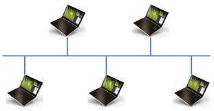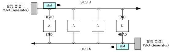 버스형은 공유 버스 하나에 여러 호스트를 직접 연결한다. 전송 데이터가 모든 호스트에 전송되므로 라우팅 기능이 따로 필요하지 않다. 하지만 공유 버스에 둘 이상의 호스트가 데이터를 동시에 전송하려고 하면 충돌이 발생한다. 이러한 충돌은 가능성 자체를 차단하는 방식과 허용 후 처리하는 해결 방식 두 가지가 존재한다. 버스형의 대표적인 형태인 이더넷은 충돌이 발생하는 것을 허용한 후 문제를 해결하는 사후 방식을 택한다.