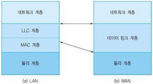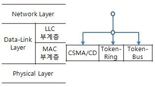 LAN 환경은 근거리에 분포된 호스트를 연결하므로 네트워크 전송 효율이 전송 매체뿐만 아니라 연결 방식이나 전송 방법에도 큰 영향을 받는다. 따라서 LAN 환경에서 데이터링크 계층을 LLC 계층과 MAC 계층으로 나누어 처리한다. 상위에 LLC 계층이 있고 하위에 MAC 계층이 존재한다.