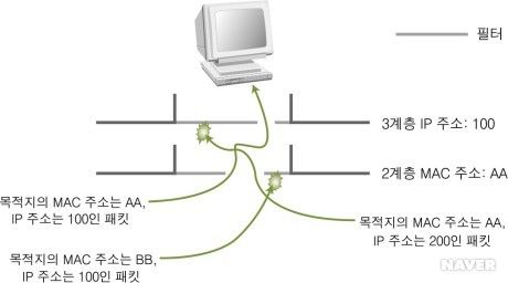 MAC 주소가 다를 경우 필터에 의해 트래픽이 필터링 된다.