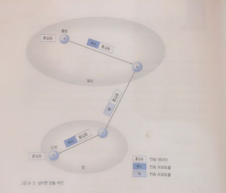 이동 IP 프로토콜을 이해하려면 먼저 터널링의 원리에 대해 알아야 한다. 두 가지의 예시를 통해 터널링의 원리에 대해 이해를 해보도록 하자. 홍길동이라는 데이터가 a위치에서 d라는 위치로 이동을 하는데 버스와 배라는 전송 프로토콜을 이용하여 데이터가 움직인다고 가정하자. 터널링 방식을 사용하지 않는 경우에는 홍길동이라는 데이터가 버스라는 전송 프로토콜을 사용하다가 배라는 프로토콜로 갈아타야한다. IP 프로토콜을 교체하는 작업이 필요하다.